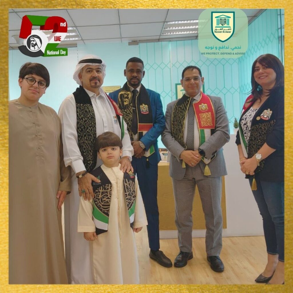 Nasser Al Awar Advocates & Legal Consultants celebrated the 52nd UAE National Day, lawyer/ Nasser AlAwar Said, “with a clear conscience, and with full confidence, as an Emirati, we celebrate the 52nd UAE National Day, with pride and pleasure, our country age is 52 but it’s achievements are 200, wise, rational and humane leadership to the utmost, centered on human & humanity, peace and coexistence, RIP to the late leaders, God Bless our UAE leaders protect them and bless them with health & victory.