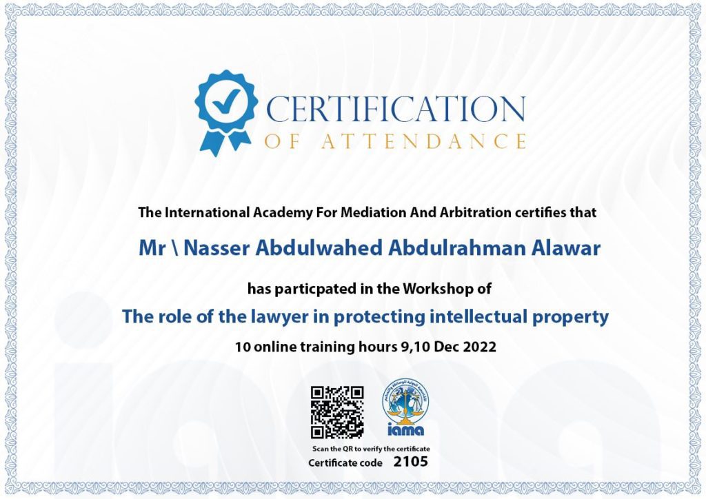 Lawyer Nasser Al-Awar from Nasser Al Awar Advocates & Legal Consultants recently completed his participation in the role of the lawyer in protecting intellectual property rights at the International Academy For Mediation And Arbitration. It is worth noting that the importance of protecting intellectual property rights is increasing over time.